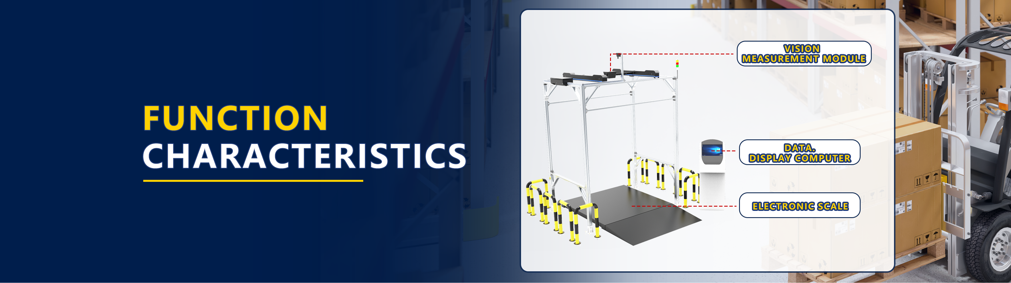 This is a volume measurement equipment specially designed to collect data for ultra-large goods. It uses a gantry and multi-angle industrial vision code reading to quickly collect the volume, weight, bar code, image and other information of the entire piece or ultra-large package in batches., the measurement accuracy is ± 25mm, and the weighing accuracy is +100g.